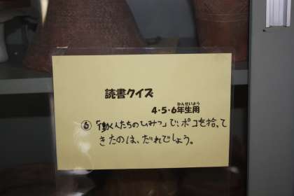読書クイズ 公開日 2012/10/15 更新日 2012/10/15 今日のスナップ 読書週間の企画「委員会児童による読書クイズ」です。校内の色々なところに問題が隠されています。問題に答えるためにはその本を読まなければなりません。何問答えることができるでしょうか。 写真左【1〜3年生用の問題】 写真右【4〜6年生用の問題】