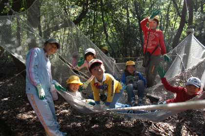 写真上から 【くもの巣ロープ】【三段ジャンボブランコ】【大風呂敷】