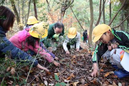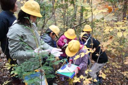 秋の森の観察 公開日 2012/11/26 更新日 2012/11/26 ふるさとの時間 掛川タイム・1〜2時限を使って、学校南側の「神明の森」へ出かけ、秋の森の観察を行いました。各班の一年間のテーマにしたがって、春・夏と観察を続け、今回で3回目です。樹木や地面の様子から秋が深まってきた季節の変化を調べることができました。定点観察用のカメラ台で同じポーズを取って写真を撮りました。