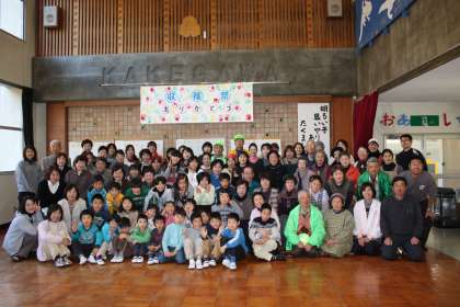 収穫祭 その2 公開日 2012/12/14 更新日 2012/12/14 最近の行事から ついたお餅は、地域の方達と一緒にお腹いっぱい食べました。一番たくさん食べた子はお餅16個、豚汁5杯でした。また、地域の方に感謝の気持ちを届けようと、心を込めて合唱や合奏の発表をしました。大勢の方に見守られて大きく成長した子ども達です。最後は全員で「はいポーズ!!」
