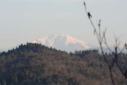 下半田川町の通学路からの眺めです。朝日に輝く御嶽山がくっきりと浮かび上がっていました。