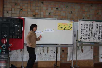 始業式では校長先生から、3学期の目標「ジャンプ!」についてお話がありました。目標達成のための合い言葉は「きらきらことば」です。「〜してみよう」「〜してみたいな」という前向きな思いを表す言葉のことです。きらきらことばを使って大きくジャンプする学期にしたいですね。