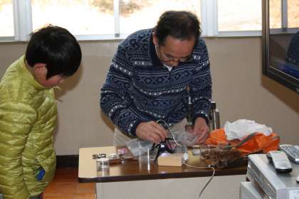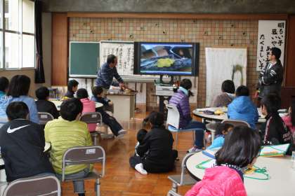 冬の森の観察 その2 公開日 2013/01/18 更新日 2013/01/18 ふるさとの時間 森の中から持ち帰った生物を拡大して映し出し、みんなで観察しました。 写真上から【採ってきた生物を講師の方に渡す】【こら!動くな】【みんなで観察】