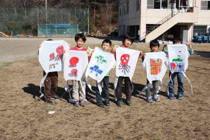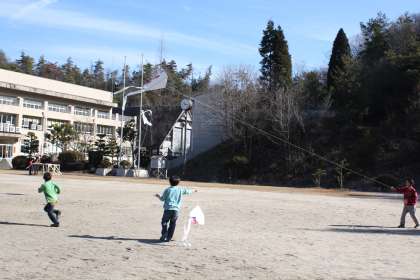 一年生が凧あげを楽しみました 公開日 2013/01/31 更新日 2013/01/31 今日のスナップ 先日お知らせしたインフルエンザの状況ですが、その後感染の拡大もなく、落ち着きつつあります。現在3人の児童がお休みしていますが、順調に回復しているようです。 そんな中、1年生は誰一人病気をせず元気いっぱいです。今日は生活科の授業で凧を作り、運動場で凧あげを楽しみました。始めはうまくいきませんでしたが、何度も繰り返しているうちに、こつがつかめてきたようです。