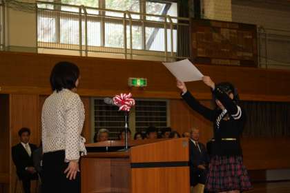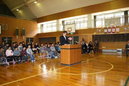 平成24年度 卒業証書授与式(1) 公開日 2013/03/21 更新日 2013/03/21 最近の行事から 3月19日、さわやかな青空が広がる中、掛川小学校の第66回卒業証書授与式が挙行されました。本校では、卒業式に1年生から5年生の在校生が出席します。また、地域の方にも参列いただき、ご来賓はじめ、多くの方に見守られる中、卒業式は進められました。
