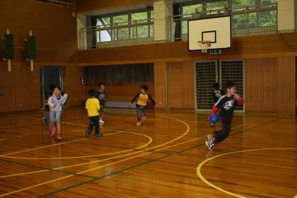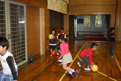 雨の日の放課 公開日 2013/04/24 更新日 2013/04/24 今日のスナップ 今日はあいにくの雨です。雨の日の長い放課に体育館で遊ぶことができるのは、少人数学校の特典ですね。1年生も体育館で柔らかいボールを使って遊びました。2年生以上は、コートを使ってドッジボールです。下の学年の子は、逃げることがとっても上手です。高学年は、さすがに速いボールを投げます。 雨の日の体育館全校ドッジボールは、掛川恒例の遊びです。