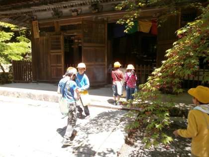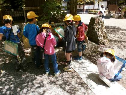 3・4年生 校外学習 公開日 2013/05/01 更新日 2013/05/01 今日のスナップ 5月1日の午前に、3・4年生が社会科の学習のため、校外学習に出かけました。学校のまわりの様子を調べるため、「旧掛川小学校跡地」や「西山博物館前」、「定光寺」などを見学しました。みんな、一生懸命メモをとっていますね。