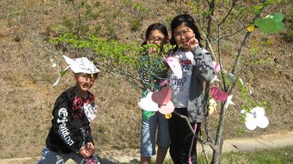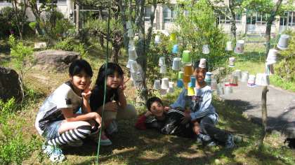 あれっ!校庭に何かが・・・。 公開日 2013/05/02 更新日 2013/05/02 今日のスナップ 校庭を見ると、きれいな飾りが風になびいています。5・6年生が図工の時間に、「風を感じて」というテーマで作品を作りました。班毎に協力して作りました。作った作品が校庭に飾られました。題名の通り、風になびいてとても素敵です。班毎の個性も出ていますね。