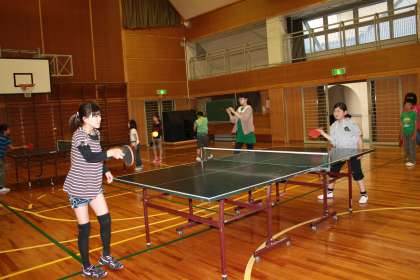 17日(金)に、本年度初めての課外活動(卓球)がありました。3年生は初めて参加します。始めに、今年度の班が発表されました。今年も班毎に練習をします。3年生は、先生からラケットの握り方や姿勢など基本から教えてもらいました。早く上達して、みんなと一緒にゲームをしたいですね。
