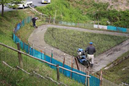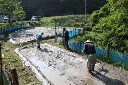 学習田の準備 公開日 2013/05/21 更新日 2013/05/21 ふるさとの時間 学習田にも水が入り、田植えの準備が始まりました。今日は、地域の方が畦の草刈りをしたり、耕耘機をかけたりして、しろかきの準備をして下さいました。最後に畦塗りもしていただき、子ども達が動きやすいように仕上げて下さいました。23日には、しろかきも兼ねて「ドロドロドロリンピック」が行われます。地域の方に感謝して、田圃からたくさんのことを学びたいと思います。