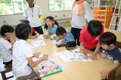 今日の掛川タイムは、間近に迫った全校校外学習の相談です。南知多ビーチランドに出かけて、仲良し班で見学をします。学校では、日頃から「ふるさとの授業」で森の学習を進めています。校外学習では磯の観察をして係の人に海辺の生き物のことを教えていただきます。