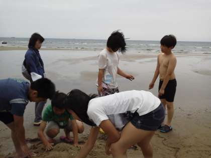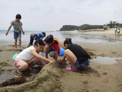 野外活動 その1 公開日 2013/06/10 更新日 2013/06/10 最近の行事から 掛川小学校は、10日・11日の二日間、美浜少年自然の家で野外活動を行っています。保護者の皆様、朝の定光寺駅へのお見送りありがとうございました。雨が心配されましたが、今のところ計画通りに進んでいます。これは、昼食後に海岸で「砂の造形」に挑戦しているところです。どんな芸術作品ができあがるのでしょう。