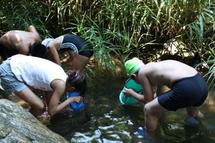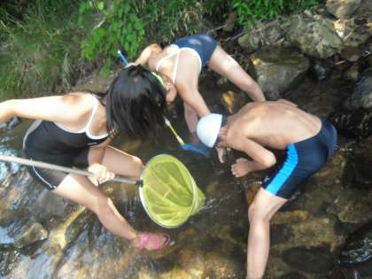 蛇ヶ洞川遊び その1 公開日 2013/07/09 更新日 2013/07/09 ふるさとの時間 雨天で1週間延びた蛇ヶ洞川遊びに出かけました。今日は絶好の川遊び日和、しかも、強い日差しの中でも日陰は気温25度、川の水の冷たさも手伝って快適です。運が良ければオオサンショウウオにも出会えるはずでしたが、あいにく現れてくれませんでした。しかし、子ども達は、水生生物探索に霧中に取り組みました。