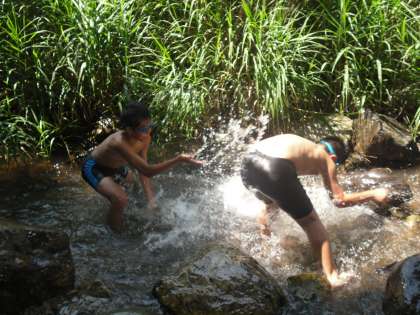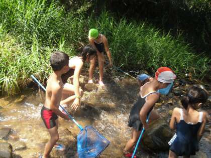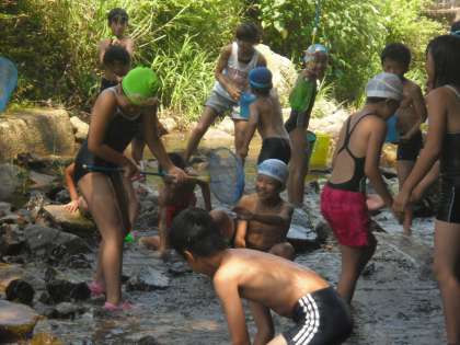 ヨシノボリ、サワガニ、カワニナ・・・・たくさんの生物を捕獲しました。6月には蛍が舞うのも頷ける豊かな自然が残っています。観察した後は、生物は全て川に戻しました。