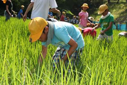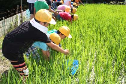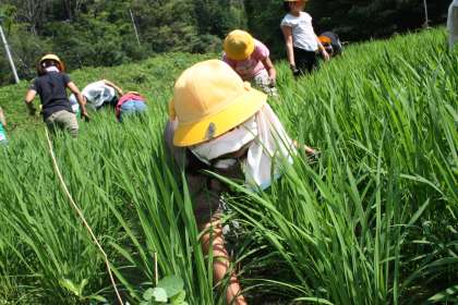 田の草取り その2 公開日 2013/07/16 更新日 2013/07/16 ふるさとの時間 高学年は広い田の草取りに挑みました。慣れた手つきで手際よく抜いていきます。それでも雑草の多さにかなり手こずりました。