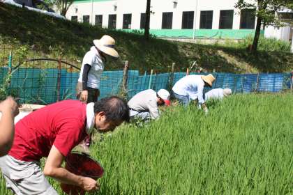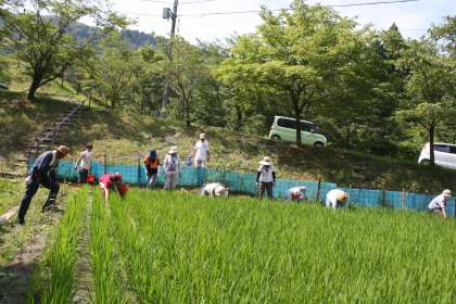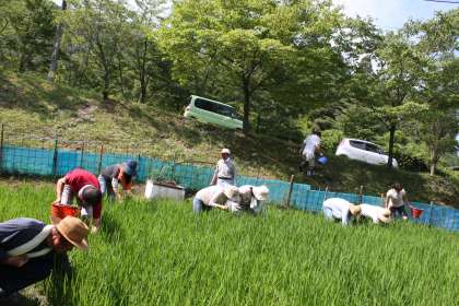 田の草取り その3 公開日 2013/07/16 更新日 2013/07/16 ふるさとの時間 子ども達の作業のお手伝いをしていただいた後、さらに子ども達が抜ききれなかった雑草を、地域や保護者の皆様に後始末していただきました。重労働が続き大変でしたが皆さん精力的に活動していただき、見違えるような田になりました。本当にありがとうございました。