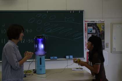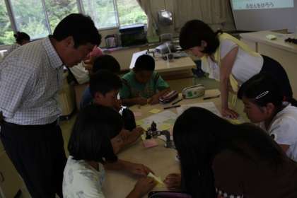 出前授業 「空の教室」(2) 公開日 2013/09/10 更新日 2013/09/10 今日のスナップ お話を聞いた後、自分の家の周辺と、通学路の危険な場所を記した「ハザードマップ」を作りました。崖崩れや地すべり・土石流の危険がある場所を地図に記入して、確認しました。 その後は、お楽しみの実験タイムです。雲を作る実験と、竜巻を起こす実験を全員が体験することができました。