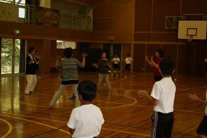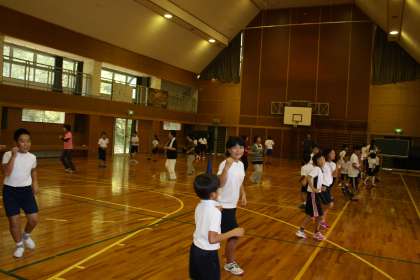 4時間目に、スポーツフェスタの種目の一つである「みんなで踊ろう」の練習をしました。この種目は、盆踊りを保護者や地域の方と一緒に踊るというものです。例年通りの「炭坑節」「瀬戸音頭」に加え、今年新たに、「おどるポンポコリン」の練習をしました。9月28日のスポーツフェスタでは、みんなで楽しく踊りたいと思います。