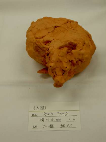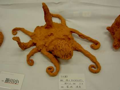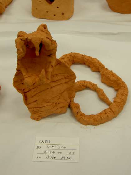 14日、15日のせともの祭では、瀬戸市小中学校子ども陶芸展が開かれました。本校の代表作品も展示されました。下記は、上から1年生の「ちゅう ちゅう」、2年生の「キングコブラ」、3年生の「海のあばれんぼう」の作品です。どの作品も力作です。
