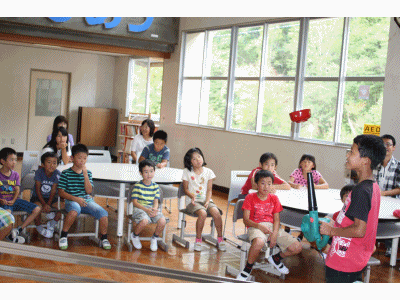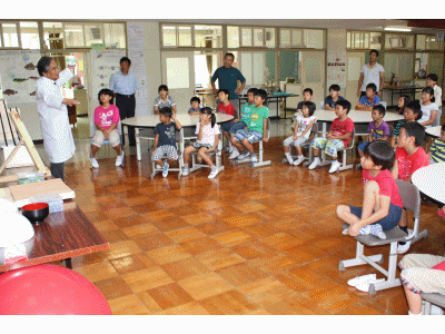 愛知工業大学から佐伯平二先生を講師にお招きし、3・4時限目に理科実験教室を開きました。子どもたちはどの実験にも目を輝かせていました。CDに付けた重りの位置が違うと回転速度が変わる? みんなで手をつないで円をつくると電流が!! 風の力で物体が浮かぶ・・・など不思議体験がいっぱいでした。