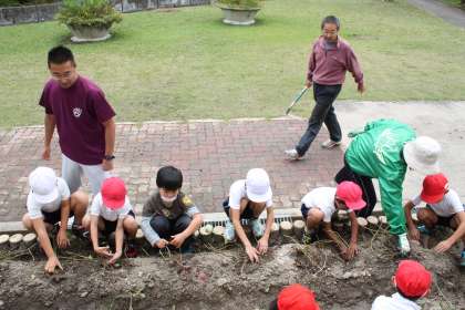 4時間目に、1・2年生が学級園のさつま芋掘りをしました。掘る前から大きな芋が顔を出しており、みんな期待に胸がふくらみます。期待通り、大きな芋がたくさん収穫できました。大きすぎて掘るのが難しかったようです。1年生の子の芋を、2年生も手伝って掘り出すという姿も見られました。