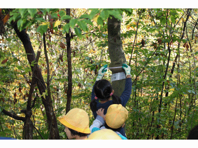 秋の森の学習 公開日 2013/11/15 更新日 2013/11/15 ふるさとの時間 神明の森で春に班ごとに決めた「気になる木」を観察しました。幹の太さを測ったり、葉のつぎ方を見たりして春からの変化をいくつも発見しました。時間の自然学習は、新しくなったウッドデッキで森の工作をする予定です。