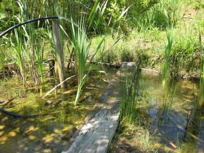 湧き水が流れこむビオトープ 公開日 2007/07/23 更新日 2007/07/23 今日のスナップ 山から湧き出た水を利用したビオトープには、とんぼや蛙,小魚が住みついています。真っ赤で小さな八丁とんぼも時折見ることができます。<7月撮影>
