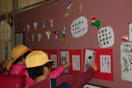 掲示板 公開日 2014/01/15 更新日 2014/01/15 今日のスナップ 保健室前の掲示板には、「けんこうカルタ」が掲示してあります。楽しみながら、健康に関する知識が身に付きます。 昇降口横には、始業式で紹介した「掛川の輪・和」の掲示物があります。1日に一つずつ先生達からのメッセージが紹介されています。子ども達は筆跡や内容をみて、どの先生からのメッセージか一生懸命推理しています。
