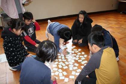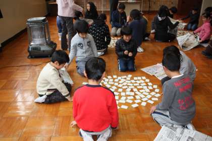 百人一首全体練習 公開日 2014/01/17 更新日 2014/01/17 今日のスナップ 3学期の掛川タイムは、2月3日の百人一首大会に向けての練習を続けています。今日から全体練習になりました。ホールに全校児童が集まって、4つの班に分かれて札をとります。みんな1枚でも多くとろうと、真剣です。