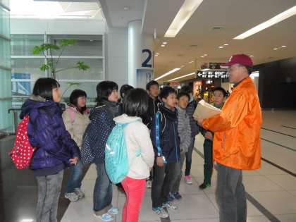 5・6年生校外学習 公開日 2014/01/27 更新日 2014/01/27 最近の行事から 24日(金)に、5・6年生が校外学習に出かけました。これは、3月に卒業する6年生との思い出づくりの一つでもあります。場所は、中部国際空港セントレアです。今回は、ターミナルビルにある海上保安庁を見学させていただきました。海上の安全を守る仕事や、海難救助に備えての訓練について詳しく教えていただきました。 ボランティアガイドさんに、セントレアのユニバーサルデザインについても教えていただきました。