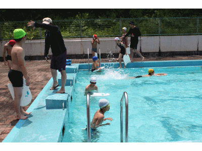 今日は2回目のプールの授業です。いよいよ泳力を伸ばす練習に入りました。