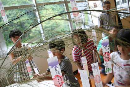 七夕集会 公開日 2014/07/08 更新日 2014/07/08 今日のスナップ 7月7日の朝、七夕集会を行いました。全校児童で、願い事を短冊に書いて竹に飾りました。学校やクラス、友達のことを思った優しい気持ちが溢れていました。