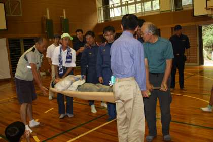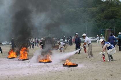 瀬戸市総合防災訓練(1) 公開日 2014/08/24 更新日 2014/08/24 今日のスナップ 24日(日)に、本校運動場と体育館を会場にして、瀬戸市総合防災訓練が行われました。定光寺、下半田川両町のみなさんが訓練に参加されました。初期消火や応急手当の方法など、実技を中心に訓練が進みました。