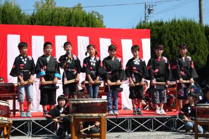 9月14日(日)に、せともの祭会場で、和太鼓を発表しました。当日33人の児童全員と、教職員3人が演奏しました。当日は快晴で、気持ちよく演奏することができました。見ていた方々からたくさんの拍手をいただくことができ、大成功でした。