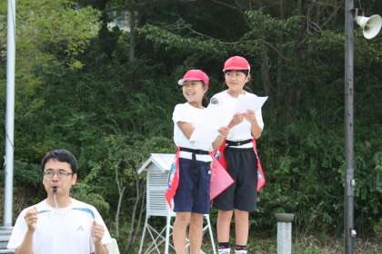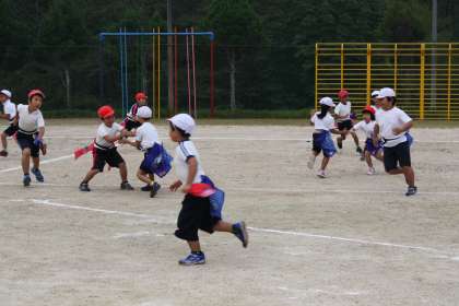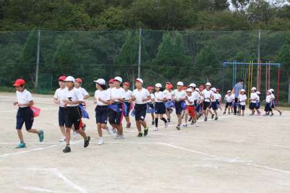 今朝のスポーツフェスタの練習は児童会種目「しっぽとり」でした。腰に着けた2枚のフラッグを取り合う競技です。本番まであと1週間です。紅白対抗種目の練習にも熱が入ってきました。各学年の演技種目も完成に近づいてきました。