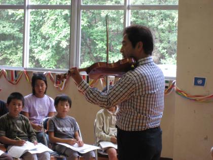 日頃経験したことのないプロの演奏を間近で聞く機会を得た子ども達は,西田さんの話にメモを取りながら,時に激しく,また時に柔らかく美しいバイオリンの音色に,ただうっとりと聞き惚れていました。