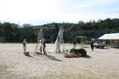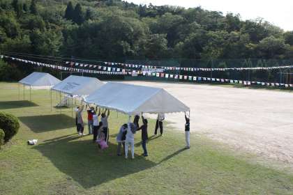 今日の午後、明日のスポーツフェスタの準備をしました。入場門や万国旗などは、地域の方が準備して下さいました。テントや机いすの準備でも、保護者・地域の方が手伝って下さいました。本当にありがとうございます。3年生以上の子ども達も、一人でいくつもの仕事をこなしました。