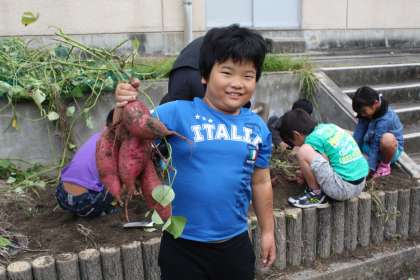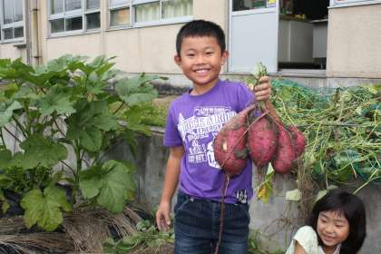 2年生 芋掘り 公開日 2014/10/09 更新日 2014/10/09 今日のスナップ 今日の生活科の時間に、2年生がさつま芋掘りをしました。小さな畑なのですが、大きな芋がたくさんできていました。芋を傷つけないように慎重に掘っていきました。収穫した芋はご覧のとおりの大きさです。どんな味がするのか、今から楽しみです。