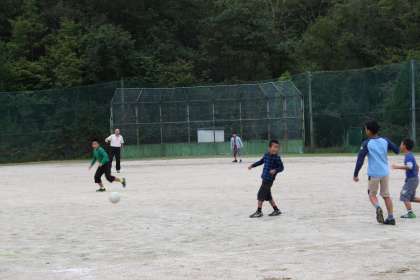 スポーツフェスタも終わって、長い放課には運動場で元気に遊ぶ姿が見られます。涼しくて、外遊びにはちょうど良い時期ですね。高学年女子はバレーボール、2〜6年生はサッカー、1・3年生は野球をしていました。ほかには、秋の木の実を集めて工作をしている子も見られました。