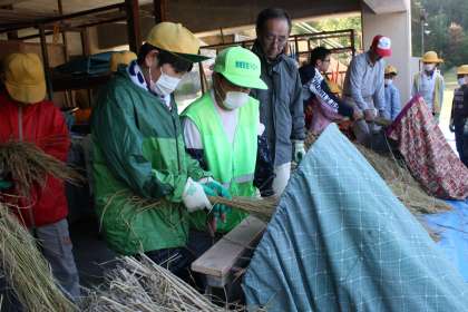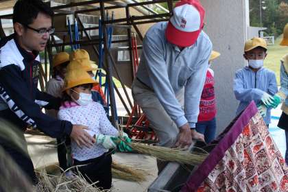 脱穀 公開日 2014/10/17 更新日 2014/10/17 最近の行事から 16日(木)に、脱穀・籾すりを行いました。この稲は、2日に学校田で刈り取ったものです。昔ながらの足踏み式脱穀機で脱穀しました。取り残った稲は、保護者の方と一緒に手で取っていきます。 脱穀・籾すりのお手伝いに、たくさんの地域・保護者の方に来て頂きました。本当にありがとうございました。