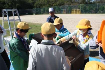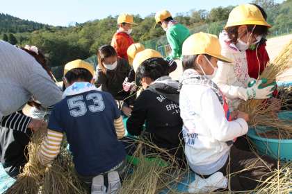 脱穀機で集めた稲の粒は、これまた昔ながらの「とうみ」を通してゴミを取り除きました。ここでとれた餅米を使って、12月に餅つきをし、収穫祭を行います。