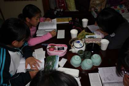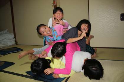 食事・入浴の後はお部屋タイムです。トランプをしたり、おしゃべりをしたりして楽しく過ごしました。また、今日見聞きしたことを忘れないようにまとめようと、机に向かう姿もみられました。