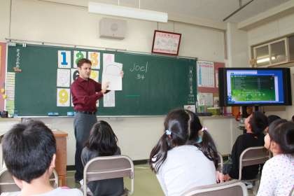 ALTの先生と外国語の学習 公開日 2014/11/11 更新日 2014/11/11 今日のスナップ 今日の午前中、1・2年生も外国語の学習をしました。ALTの先生のジェスチャーやゲーム、歌などで子ども達は楽しみながら学習することができました。
