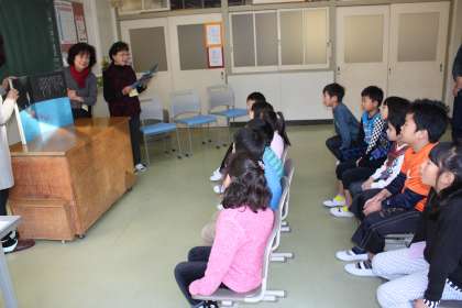 今日は掛川タイムと一時間目に、らんぷの会の皆様による本の読み聞かせがありました。低・中・高学年に分かれて読んでいただきました。どの教室でも話の内容に聴き入っている姿が見られました。低学年は、楽しいお話を聞いて、笑顔があふれていました。