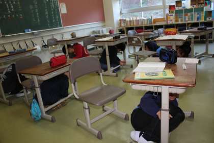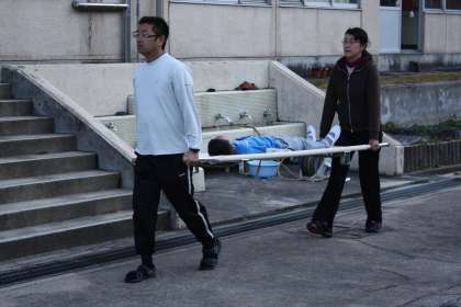 避難訓練 公開日 2014/12/09 更新日 2014/12/09 今日のスナップ 今日の朝,予告なしの避難訓練を行いました。まだ,朝の会が始まる前の担任がいない時に,地震の効果音を校内に一斉に流しました。各自でしっかり身を守ることができました。また,児童が負傷した時の救助も行いました。