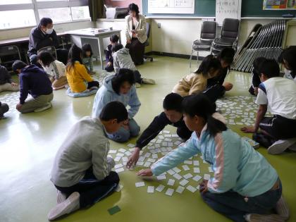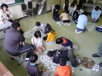 3学期始業式翌日の1月8日から、2月4日開催の「百人一首大会」に向けて、業前の時間を使って練習を始めました。全校児童がA〜Dの4グループに分かれ、毎日グループ毎で札を取り合っています。