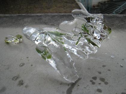 毎日冷え込みます。昨日は子どもたちが登校する時間は−3℃でした。早速写真のように立派な氷のかたまりを登校中に拾って教室に持ってきて、窓の外に飾る子がいました。