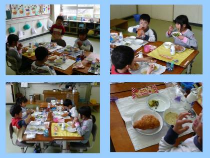 今日のメニューは、小えびのスープと焼肉サラダにクロワッサン、それにお祝いメニューとしてクレープがつきましたが、みんなぺろりと平らげてしまいました。