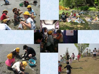 子どもたちの心残りは、時間が短かったためおやつを食べる時間がなかったこと。帰りに家の近くのバス停でバスから降りるや否や、近くの公園でビニールシートを引き、友達と車座になって、たくさん残っているおやつを食べる微笑ましい姿が見られました。