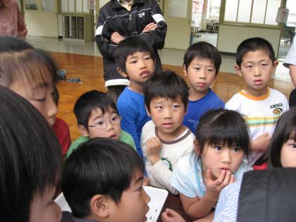 「ほたるの里」での活動の様子を聞き、ホタルの幼虫やカワニナの実物を見せてもらいました。子ども達の手で、本校でまたホタルが見られるようになることを願っています。